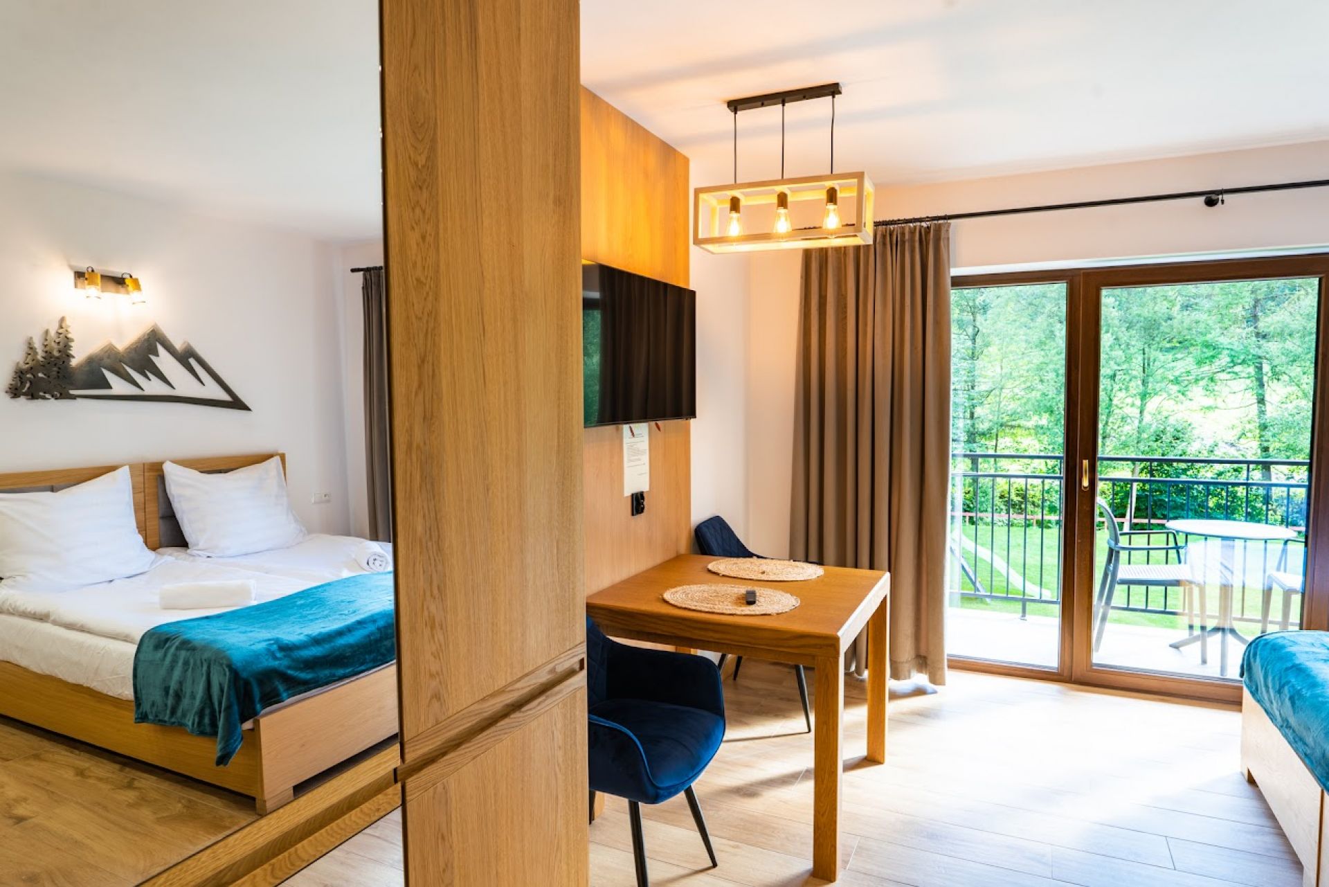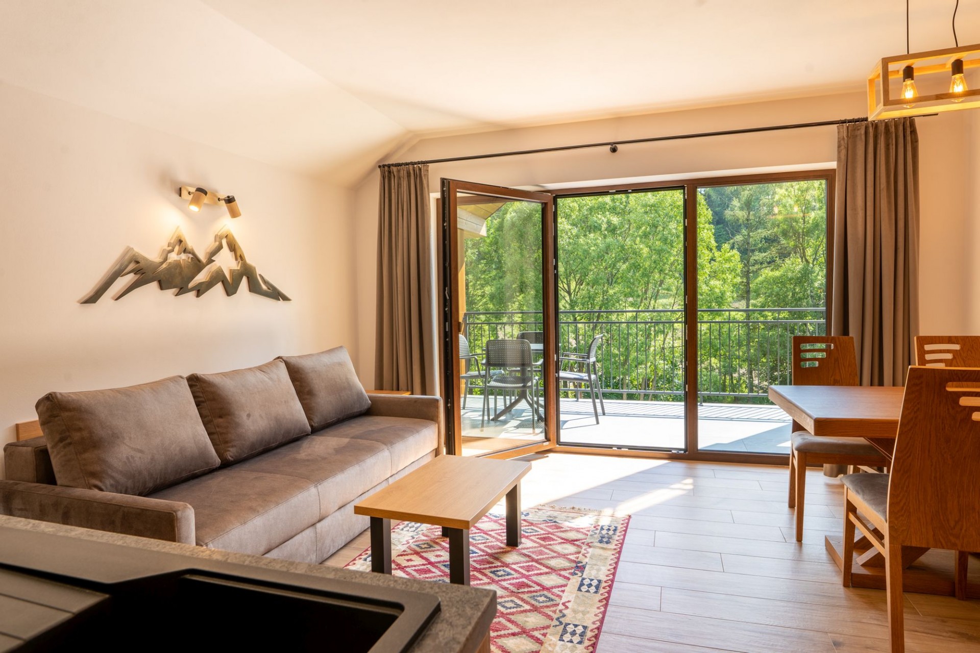Nowoczesne apartamenty w sercu Pienin, stworzone do relaksu we dwoje lub z rodziną. W pełni wyposażone wnętrza z balkonem i widokiem na naturę oraz dostęp do strefy wellness: sauna, jacuzzi i podgrzewany basen. Dopełnieniem pobytu są śniadania w formie bufetu.